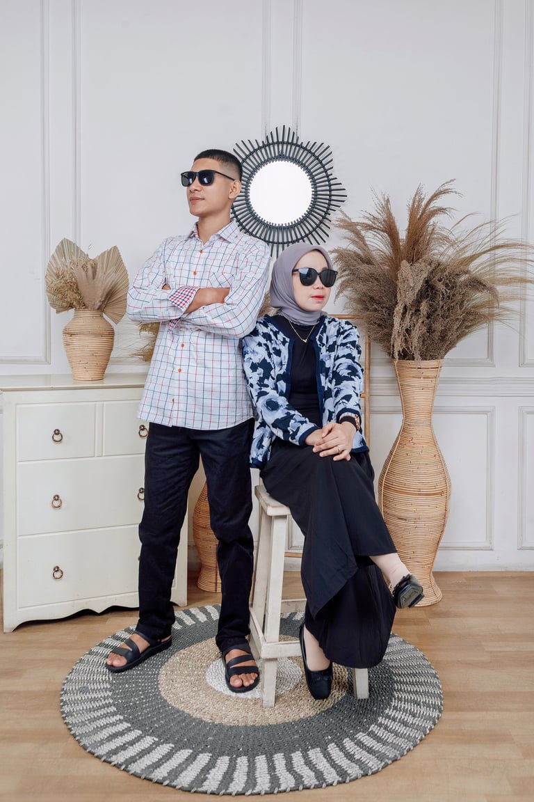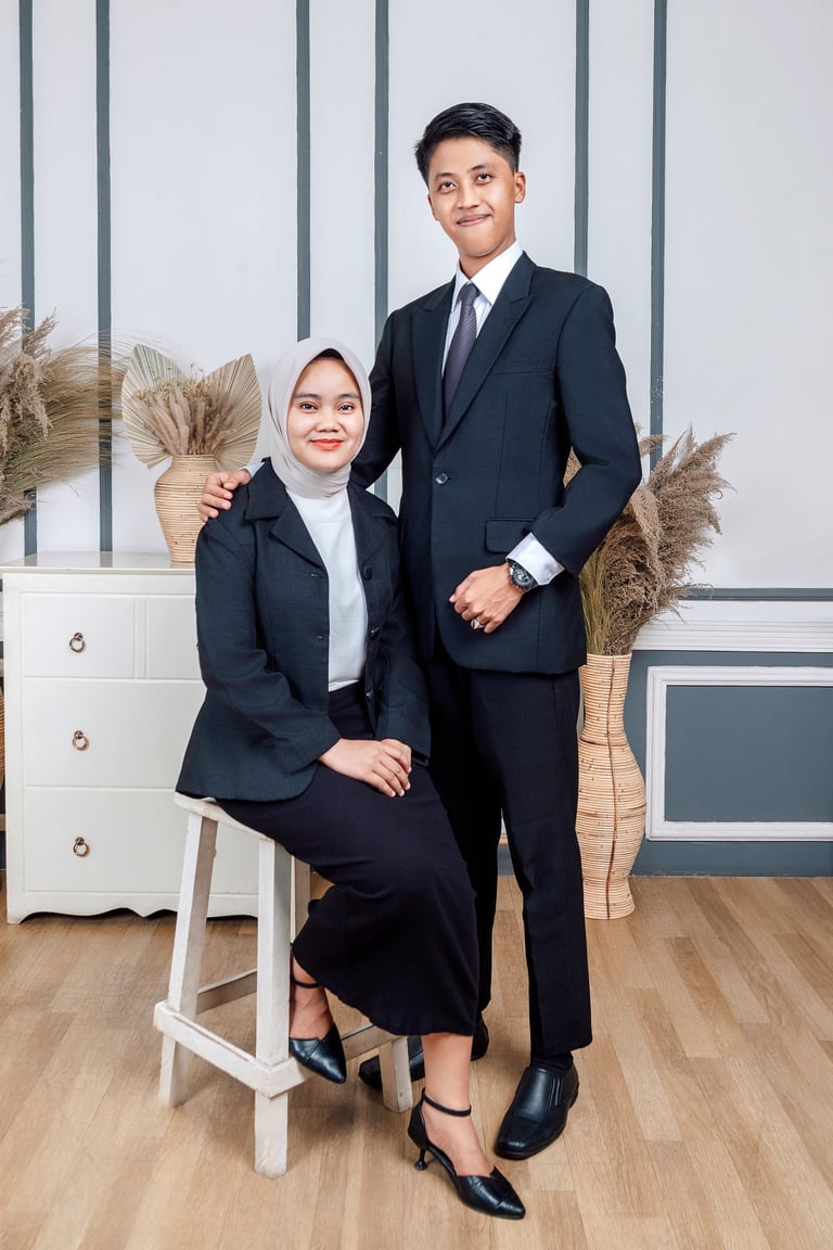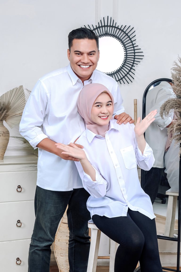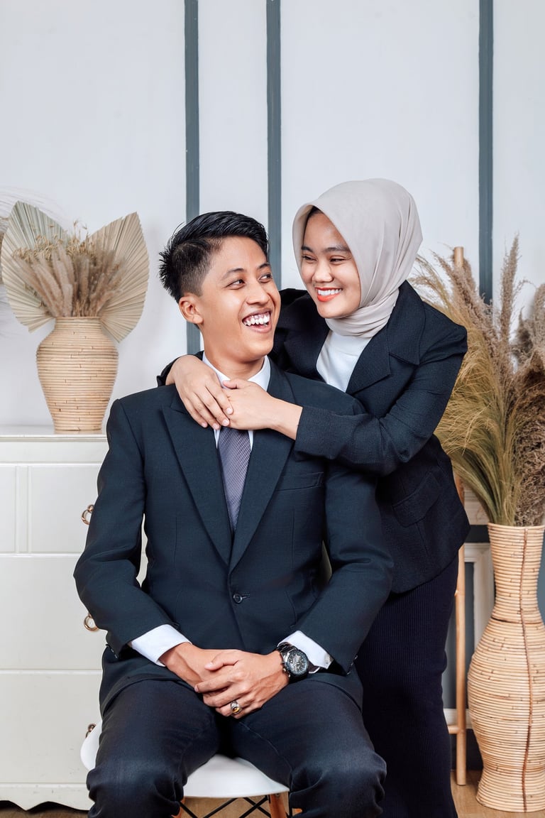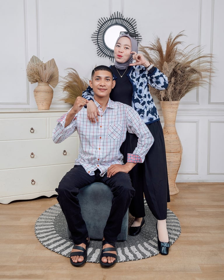 Foto studio couple umumnya menggambarkan momen kebersamaan dan keintiman pasangan yang diabadikan di dalam studio foto.