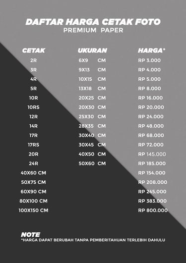 Daftar harga Foto Studio dan Cetak Foto 2025 Rafi Studio Photography.