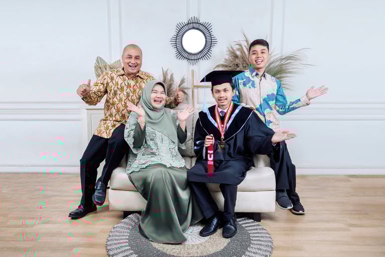 Rayakan indahnya momen foto wisuda Anda dengan foto bersama keluarga tercinta. Wujudkan kehangatan keluarga yang tak terlupakan.